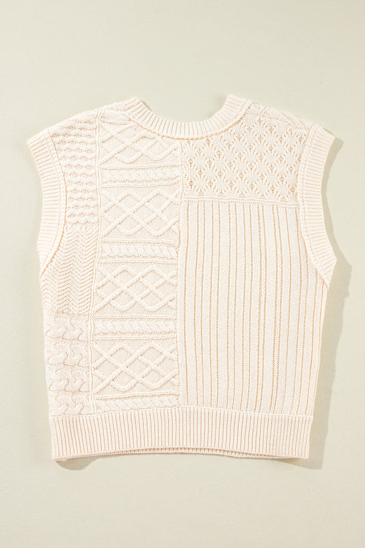 Beige Cable Knit Dolman Armholes Sweater Tank