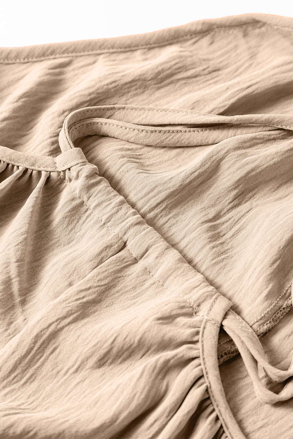 Apricot Spaghetti Straps Waist Tie Wide Leg Jumpsuit with Pockets
