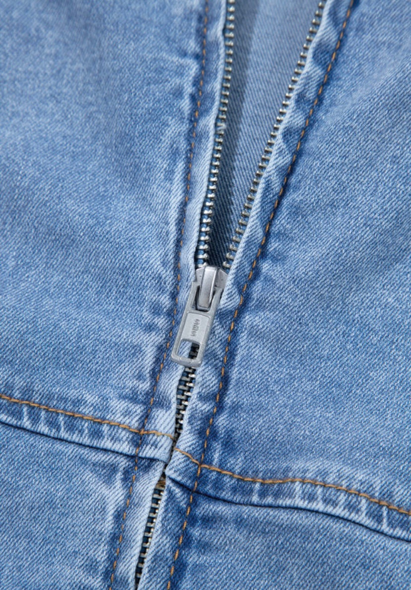 Beau Blue Seamed Zipper Square Neck Sleeveless Denim Mini Dress