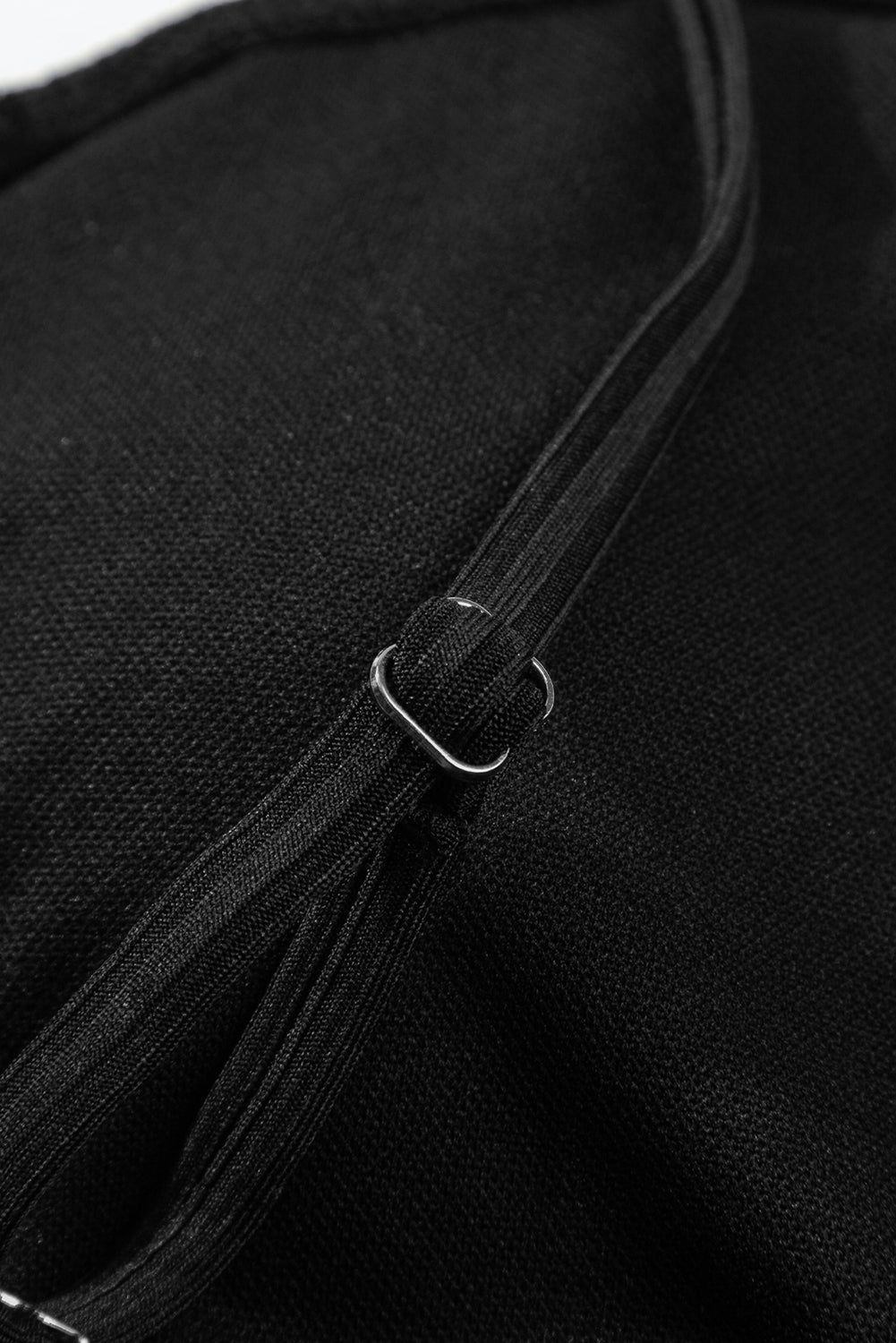 Black Ribbed Drawstring Sides Cutout One Piece Swimsuit