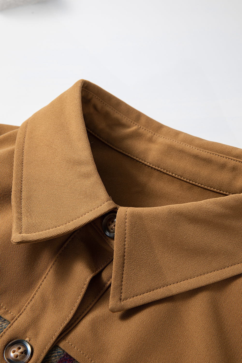 Khaki Plaid Patchwork Long Sleeve Shirt Mini Dress