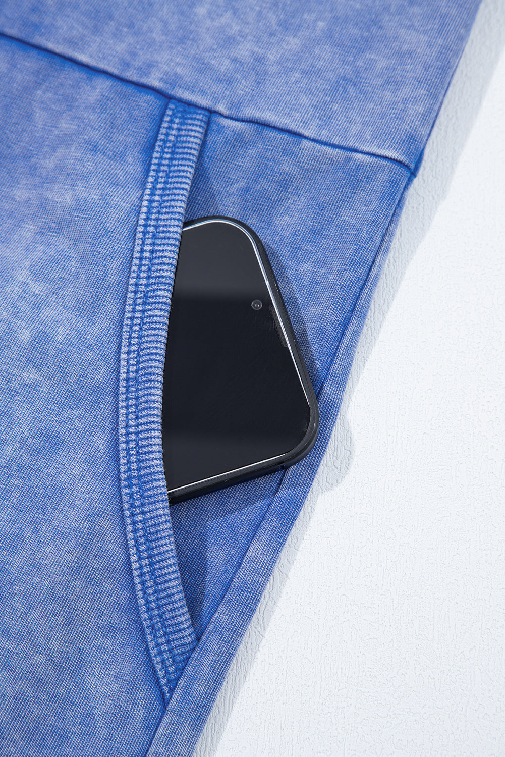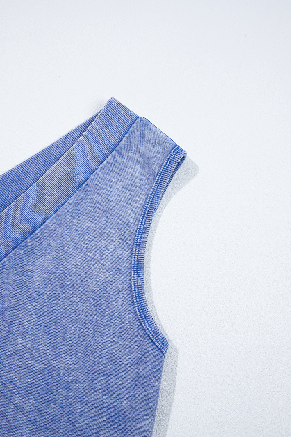 Sky Blue Mineral Wash Pocketed Sleeveless V Neck Loose Romper