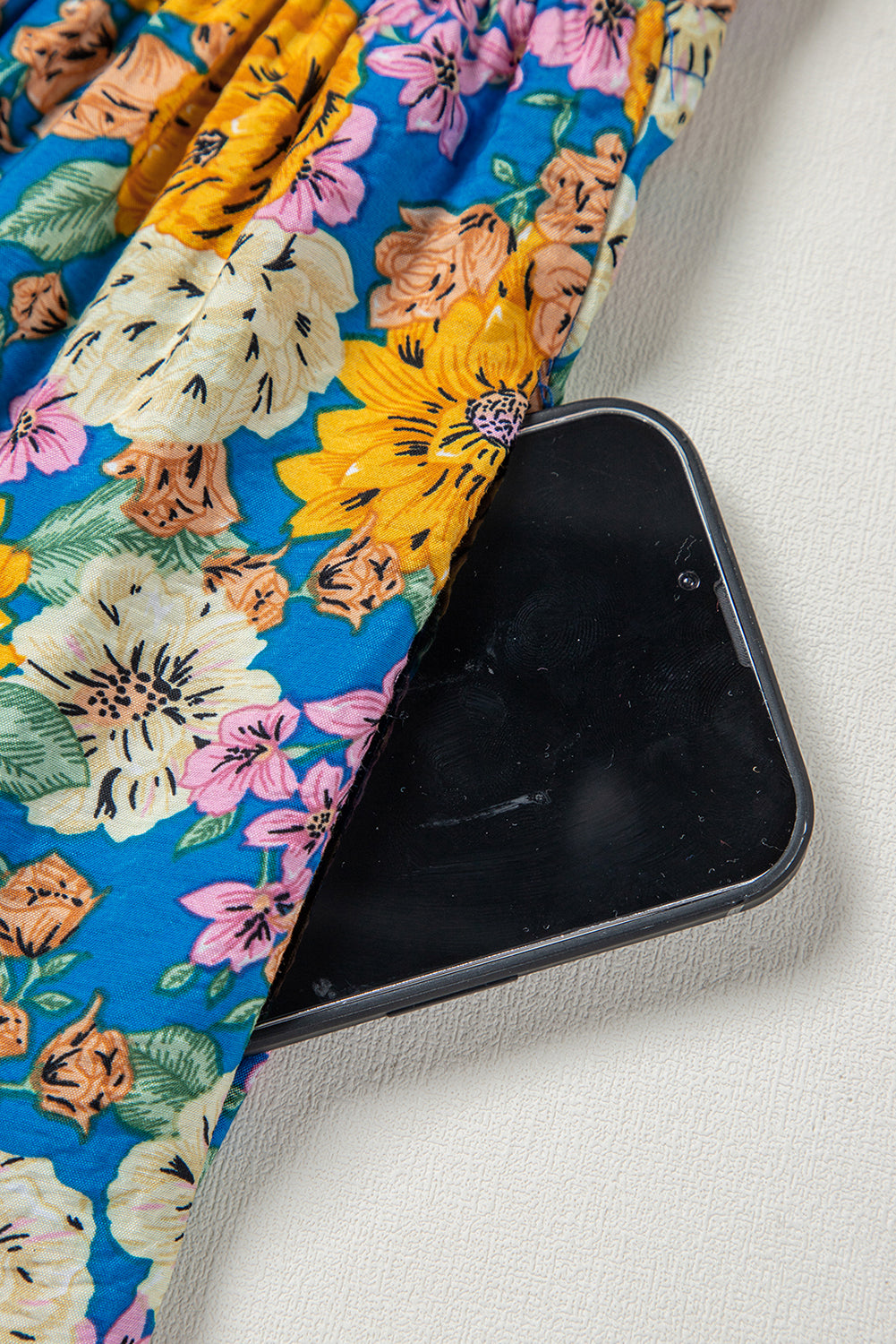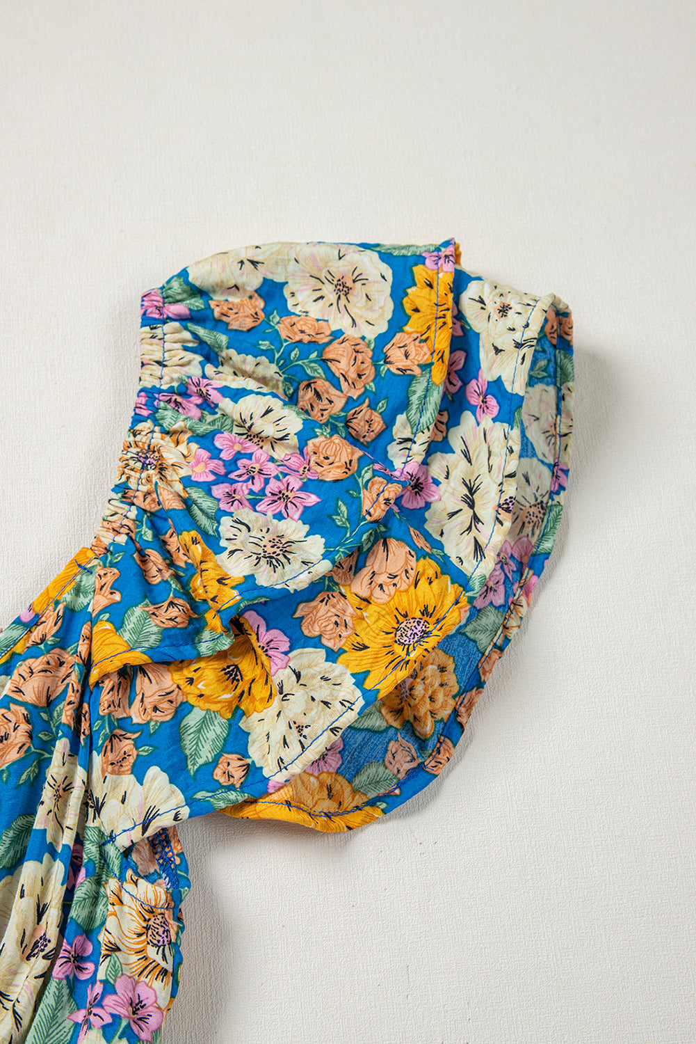 Yellow Floral Allover Print Shirred Cut Out High Waist Jumpsuit
